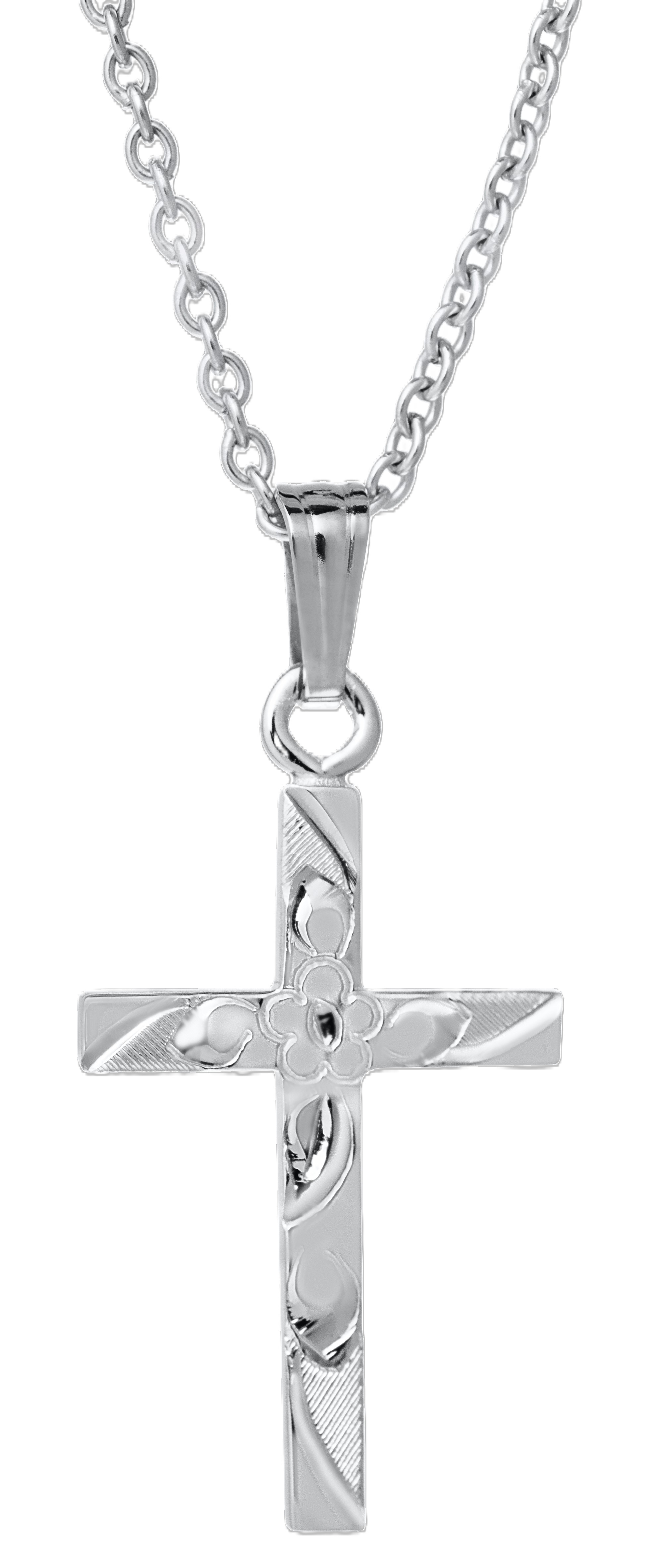 Floral Engraved Cross Necklace